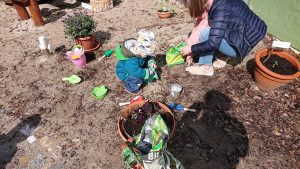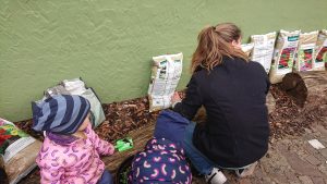 Im Rahmen unseres Frühlingsfestes machen die Krippenkinder mit Eltern und dem Krippenteam den Krippengarten hübsch. Gemeinsam wird Unkraut gezupft, gekehrt und schöne Blumen, duftende Kräuter und leckeres Gemüse gepflanzt.