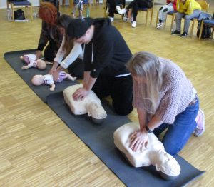 Natürlich durfte auch der Spaß dabei nicht fehlen und zu Liedern, wie „Biene Maja“ und „I will survive“ wurde der richtige Rhythmus bei der Herz-Lungen-Wiederbelebung schnell gefunden.