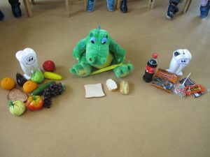 Gemeinsam mit ihr besprechen wir, welche Lebensmittel gut für unsere Zähne und welche weniger gut sind.